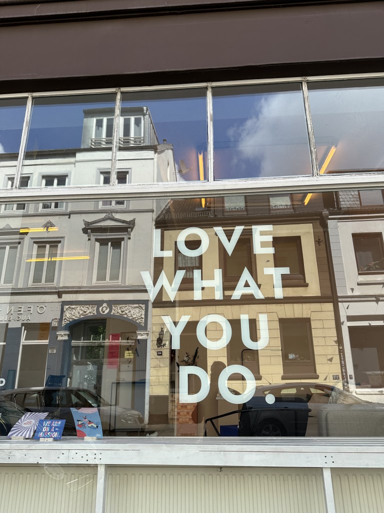 Just down the street from the hostel was a co-working space with a big message on the glass window — “LOVE WHAT YOU DO.” — and a much smaller message on a piece of paper just inside the window — “WE ARE ON A MISSION.” I think loving what you do extends beyond your career, your hobbies and your family to your everyday actions: how you treat people, how you lift people up, how you look for ways to help. We should all be on a mission, like Braden, to make the world a better place.