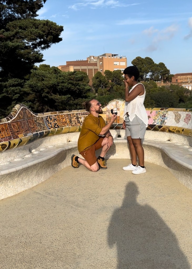 The park has stunning views, a sprawling garden and striking architecture by Antoni Gaudi. Kristiaan finally settled on Park Güell to propose but he grew nervous when they could not get tickets.